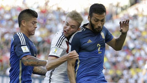 chạm rất mạnh với trung vệ của Argentina là Ezequiel Garay. Hậu quả là